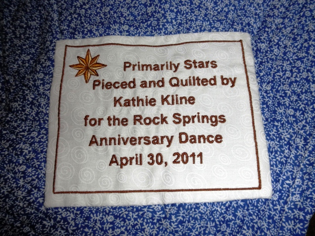 | Primarily Stars is a quilt from the Easy Quilts magazine from the Quilters Club of America. It is in the Summer 2009 issue and was designed by Jodie Davis. I gave the quilt to the Rock Springs Square Dance Club to us as a price for their 2011 Anniversary Dance. | ||||