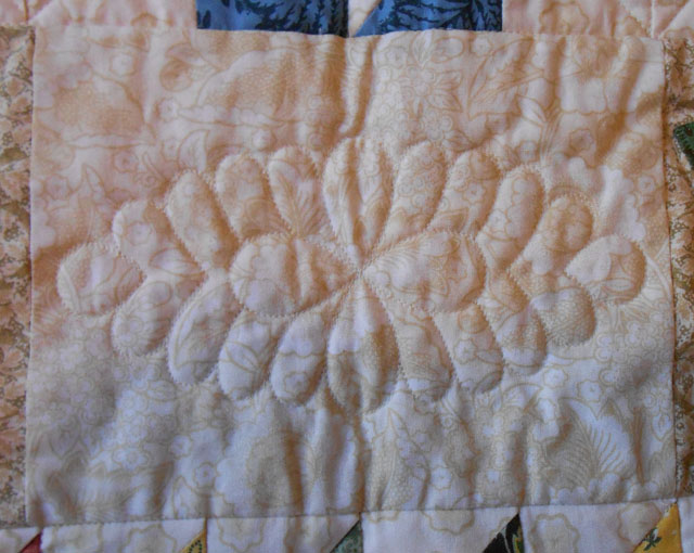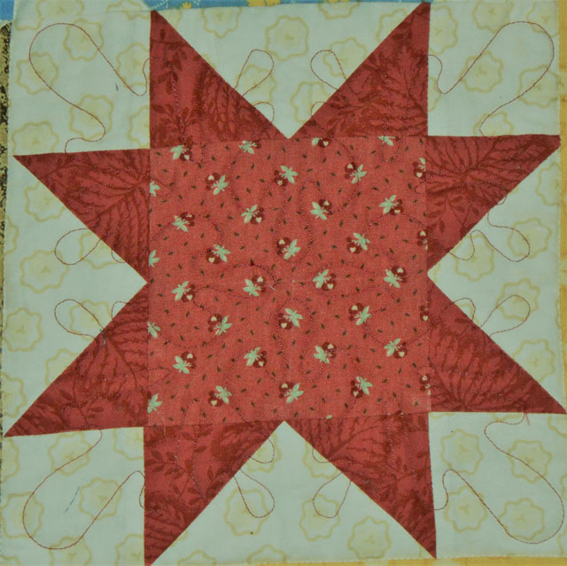 | Made from the kit from Cratsy for the BOM for 2016. The material is from RJR. This quilt is for my oldest grand-daughter when she graduates from high school. The label isn’t made yet as I don’t have a date for her 2018 graduation. Yes, it is nice to have a project finished before it is needed. | ||||