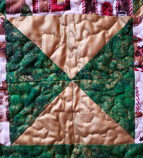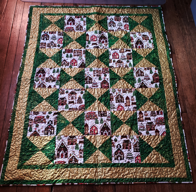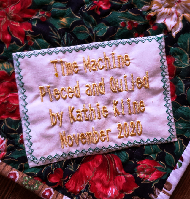 | This is a pattern called Time Machine by Donna Robertson. The book is entitled "Easy Does It 3-yard Quilts". It took only 3 yards of material and is 44 x 58 inches in size. The material was purchased as a bundle in North Carolina and was bundled especially for making a 3 yard quilt. | ||||