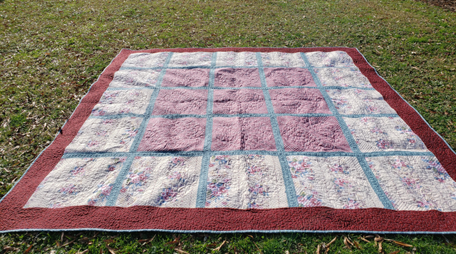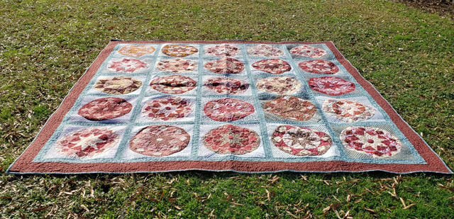 | This quilt I made for our bed. It is English Paper Pieced. The pattern is a Sue Daley Design. | ||||