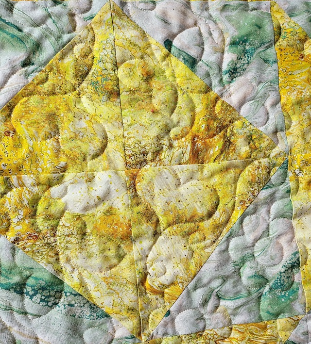 | This is made with a 3-yard quilt pattern by Fabric Cafe. The quilting is done on my embroidery machine. The embroidery pattern in an edge to edge quilt pattern by Annie Scott Designs. It took 24 hooping to quilt the entire quilt. This is the first time that I have tried this technique. Will definitely try it again. | ||||