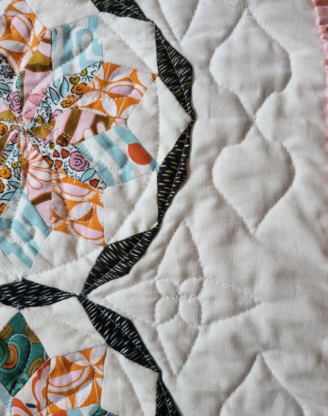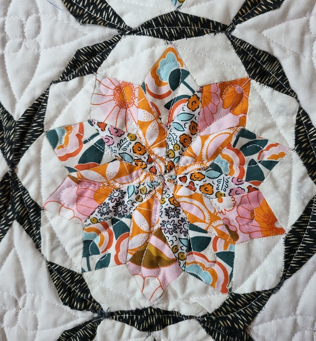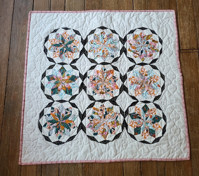 | This is a pattern that was included with the Quilty Box in January of 2020. Just now was able to get it finished. It is done with English Paper Piecing and the quilting is done with ruler work. | ||||