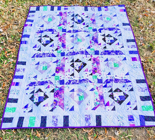 | ]his is a quilt made with a jelly roll and background fabric. The book was called "Layer Cake, Jelly Roll and Charm Quilts” by Pam and Nicky Lintott. | ||||