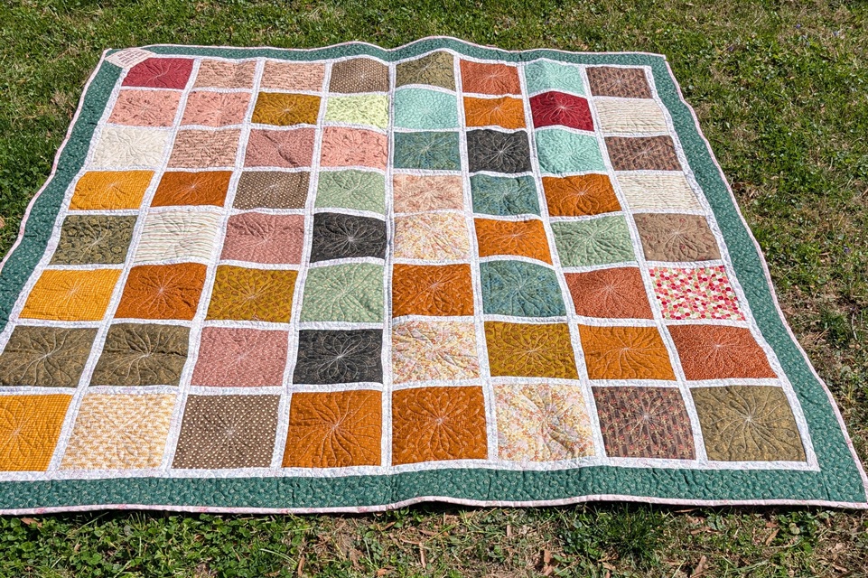 | This quilt is made with scraps. The back is done in fall colors. Eith side of the quilt and be used as the top side so it can be reversed. | ||||