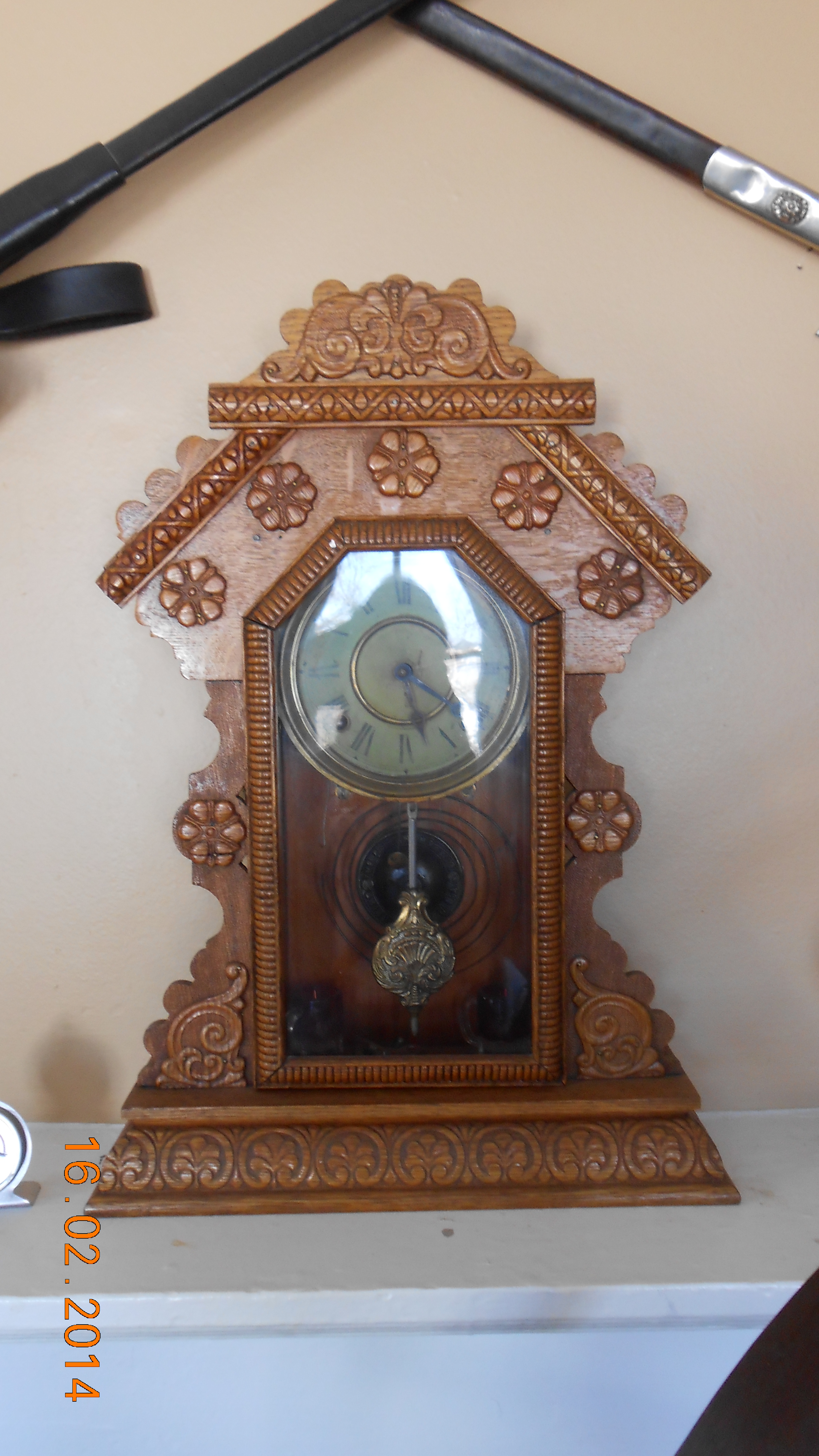 | This clock was a 1913 wedding present for Clarence Border & Emma Hadenfeldt, Kathie's Grandparents. | ||||
