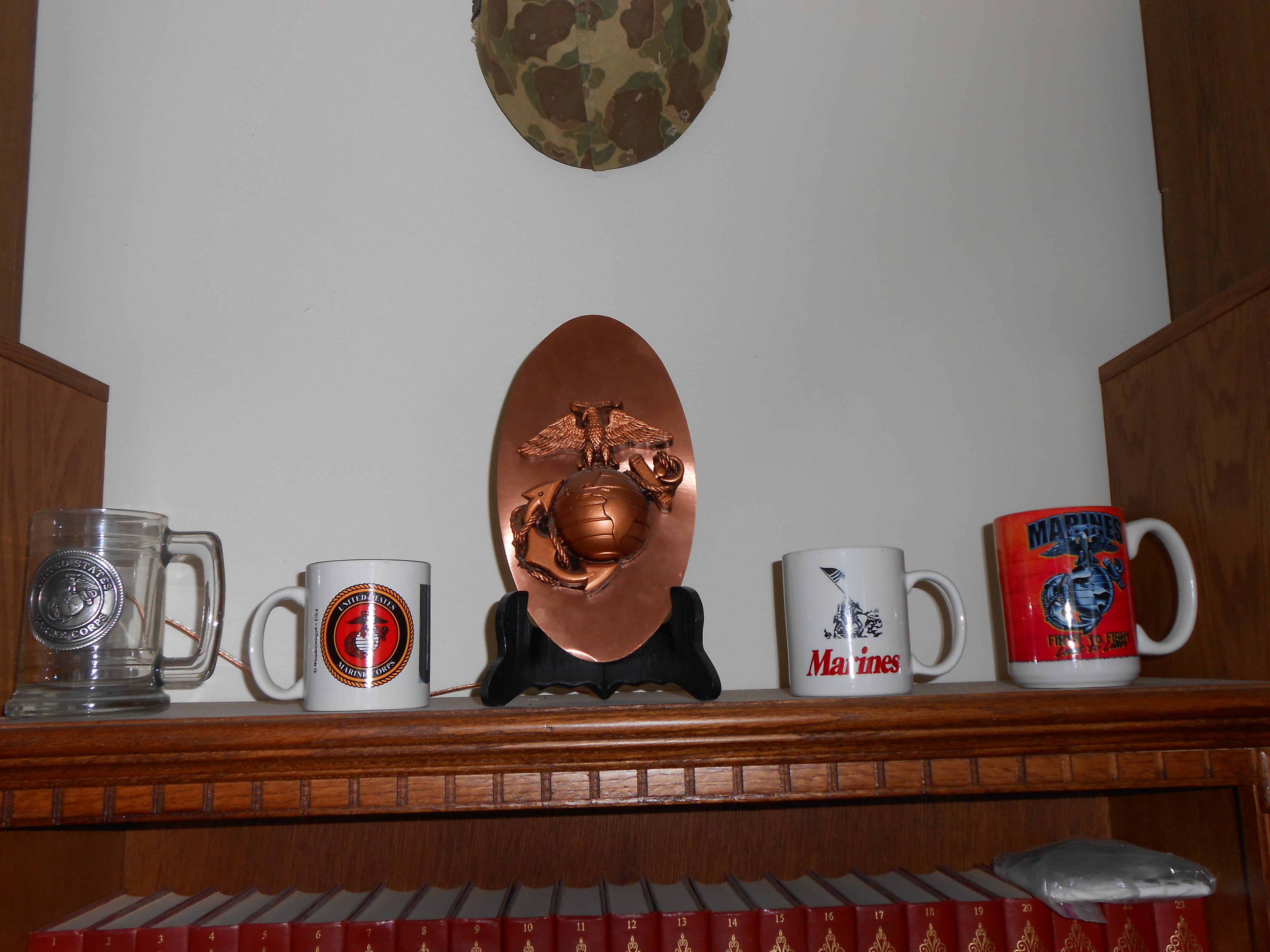 | Erik gave this plaque to Jim. The cups he also received as gifts over the years. | ||||