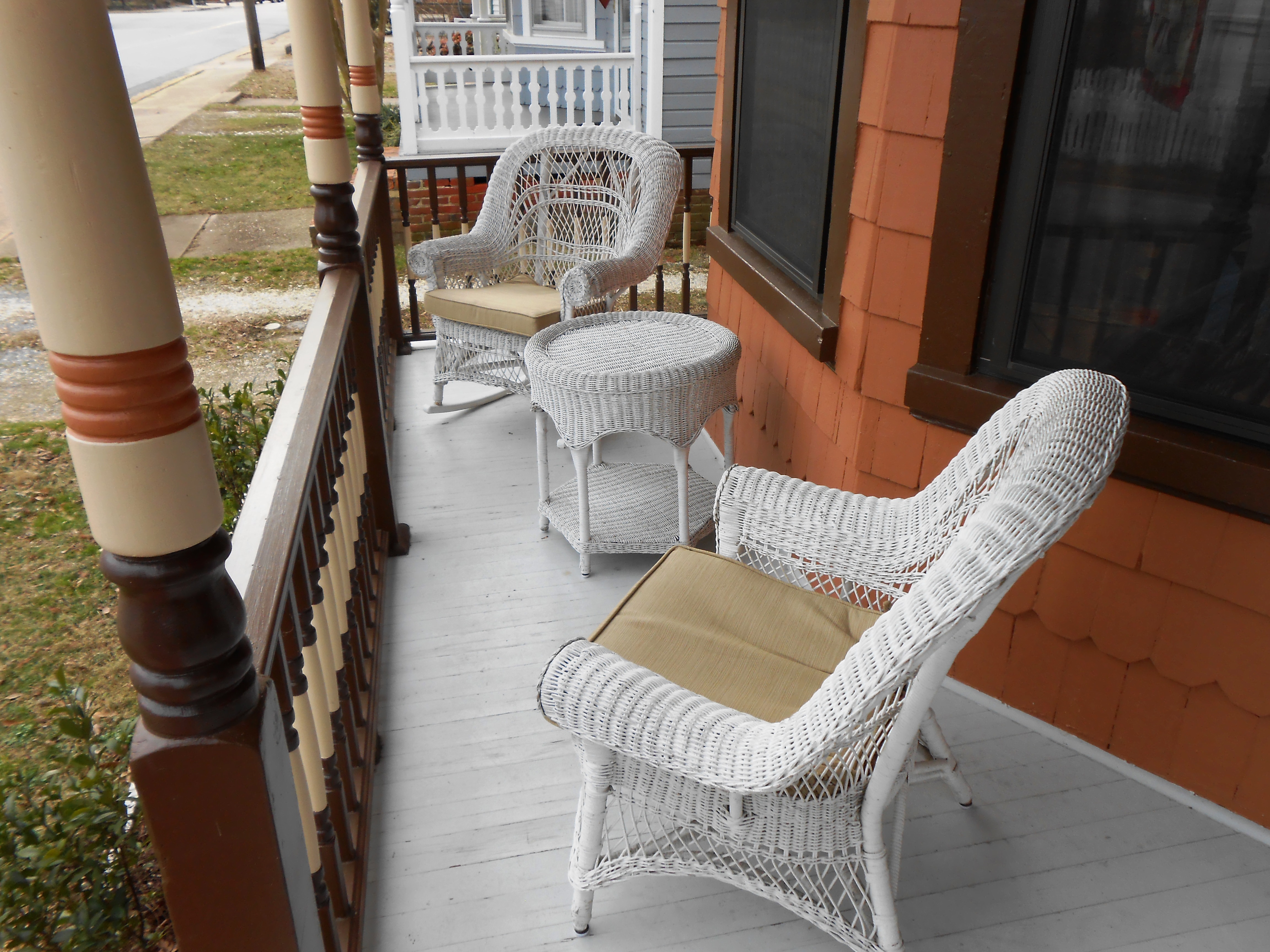 | While Barbara was visiting for Christmas, 2013, we took her to see Carrollton Furniture. While there we saw this wicker furniture set. We had been looking for a set in white like this one for a long time. We transferred this set to Erik's house in the summer of 2016. | ||||