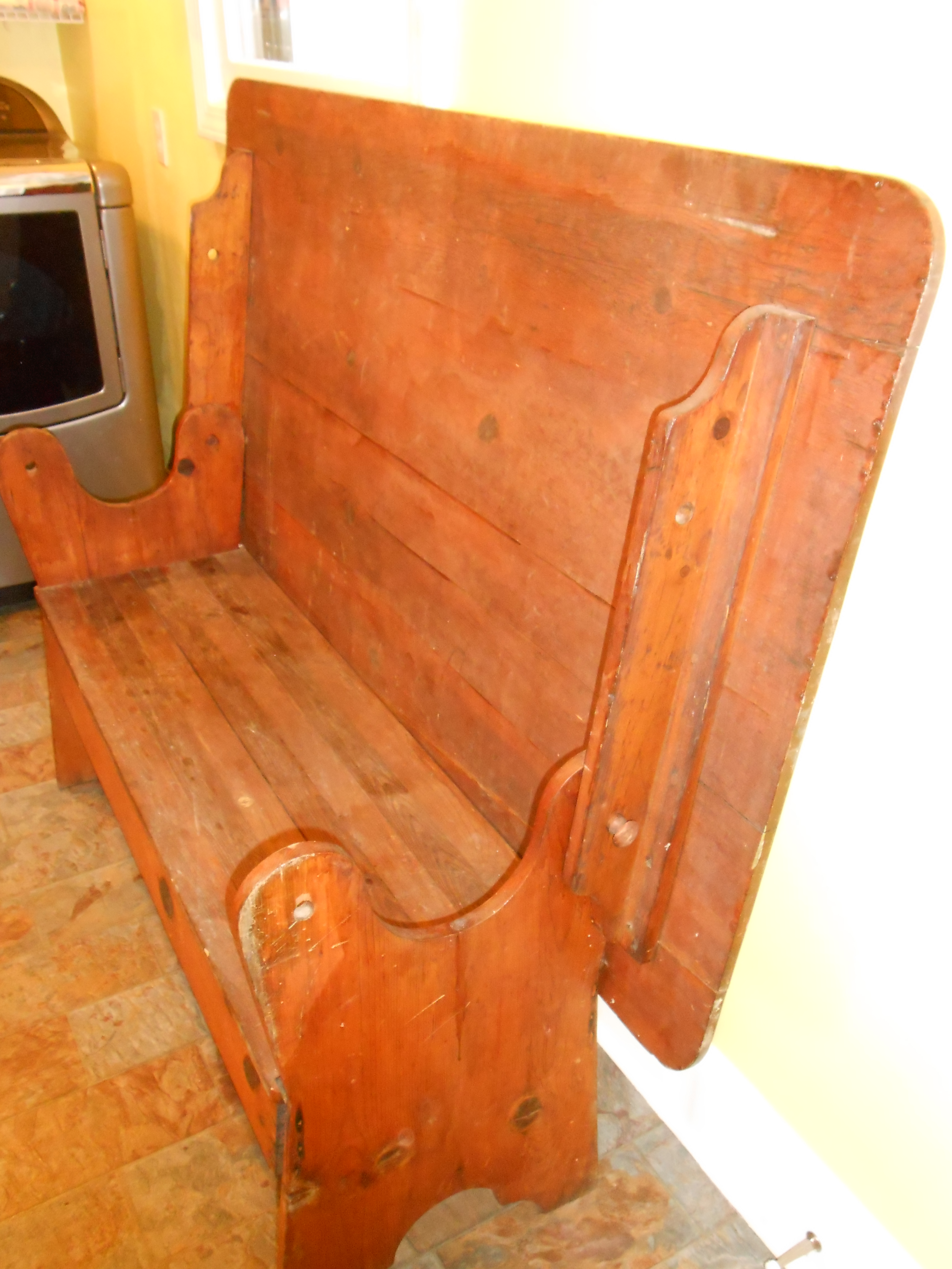| This bench which converts to a table was made by Truman Hardy, Kathie's grandfather. He made it for Orlin & Helen Border and has remained in our family. | ||||