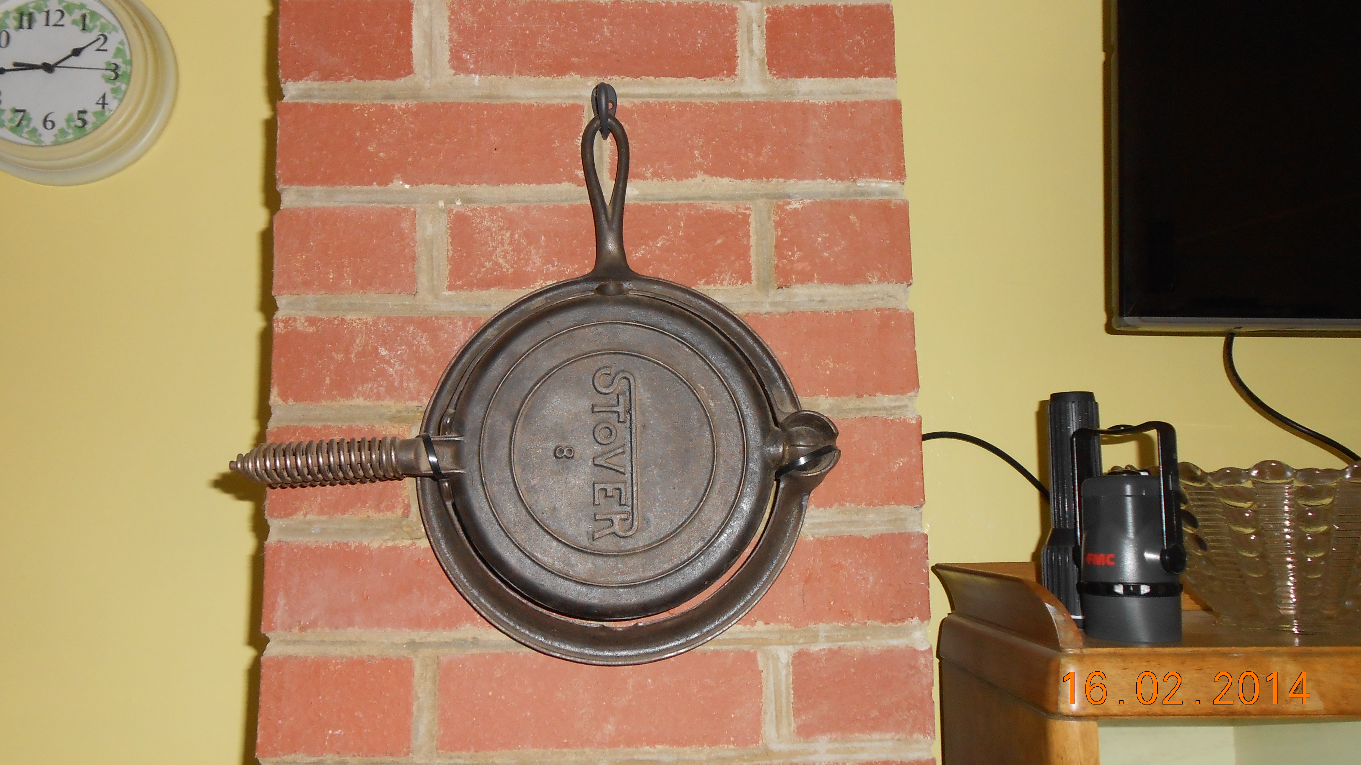 | This waffle iron belonged to Bill Kline and Bev Verlautz Kline, Jim's parents. It was often used bexause they cooked on a wood stove, which also heated their Round Valley, Idaho, cabin. | ||||