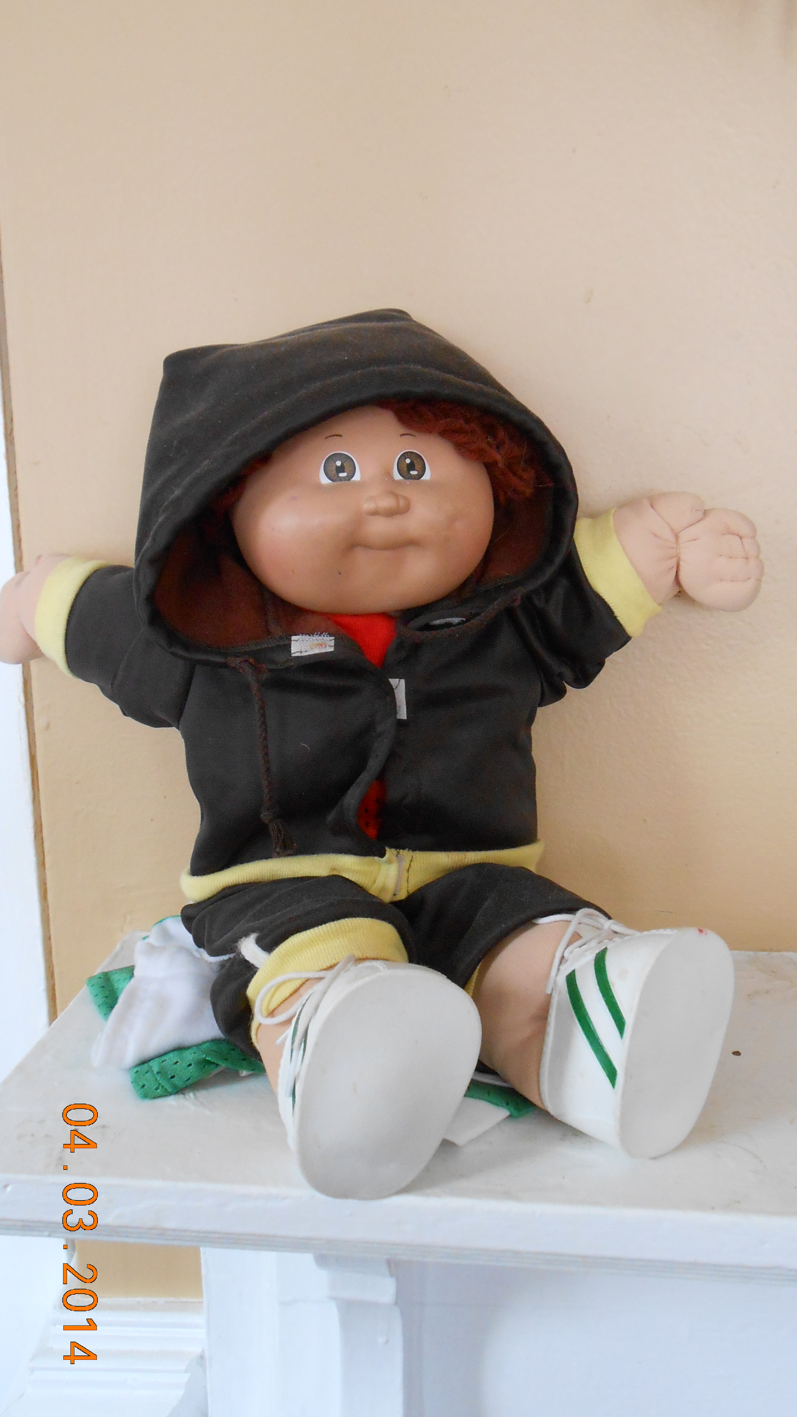 | This is an original 1982 Cabbage Patch doll we gave our son. The birth certificate is dated October 1, and he is named Bernard Norbert. | ||||